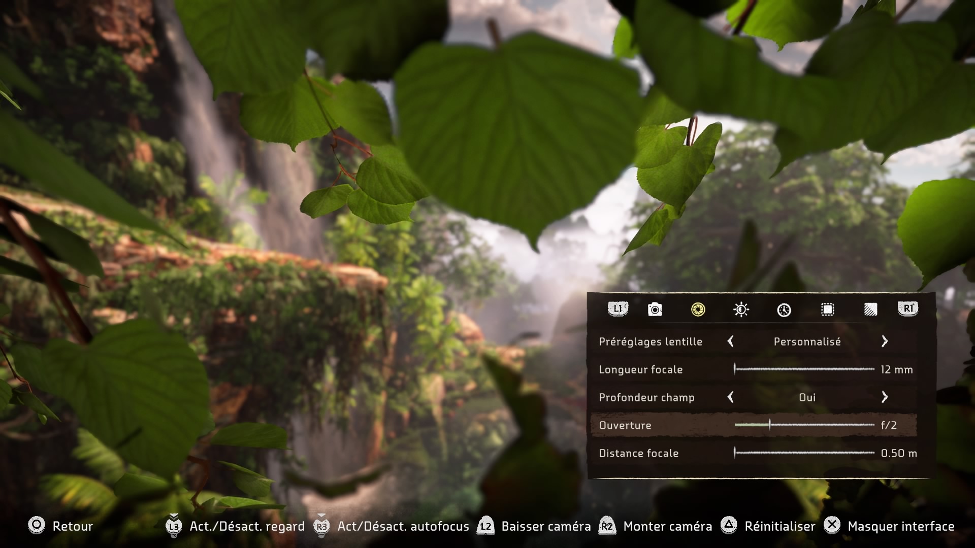 Ici j’ai changé la partie ‘préréglages lentilles’ pour faciliter la photographie de jeu en mode zoom dans Horizon 2.