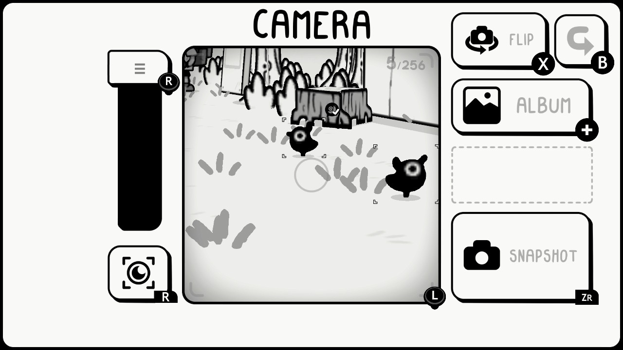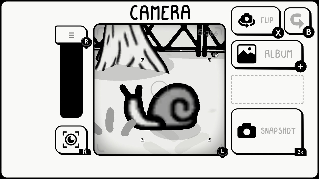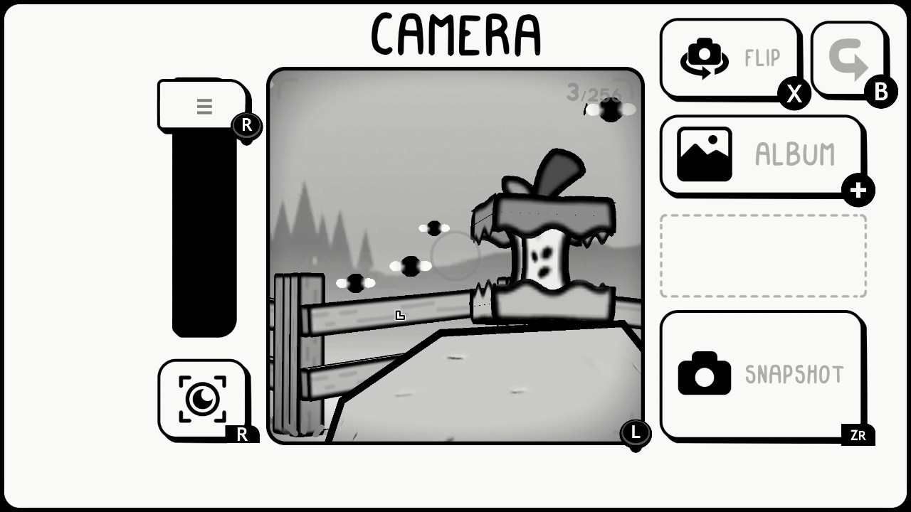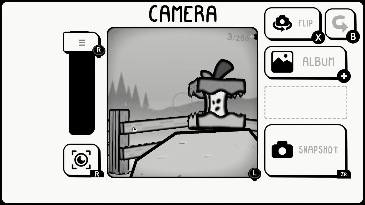 En effet, le jeu nous invite lors d’une sorte de voyage initiatique à aller immortaliser tout un tas de moments avec un appareil photo qui nous ai confié. En soit il n’existe donc pas de mode photo à proprement parler mais juste d’une touche pour prendre son appareil et immortaliser les scènes. Le jeu se déroule en noir et blanc et les fonctionnalités peuvent sembler limiter si on les compare à des modes photos de jeu AAA sur console de 5ème ou 6ème génération mais cela ne nous empêche pas d’aller capter quelque chose qui ressort de cette DA qui possède vraiment une âme.