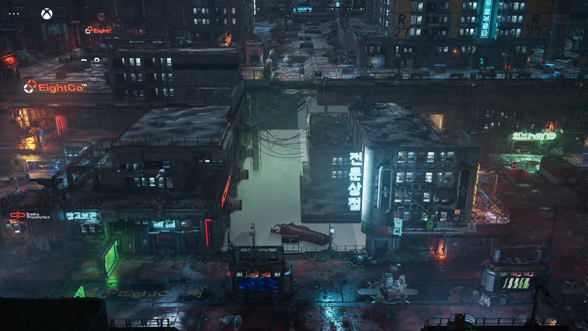 The Ascent évolue dans un univers Cyberpunk très, mais très travaillé (et encore je ne l’ai pas testé sur la version PC…). Le jeu se joue en perspective isométrique (vue au dessus quoi) ce qui m’a au début perturbé (je ne joue jamais à des jeux avec ce type de vue) mais je me suis vite habitué et ai pu profiter des avantages que cela peut donner dans un monde aussi riche que celui de The Ascent.